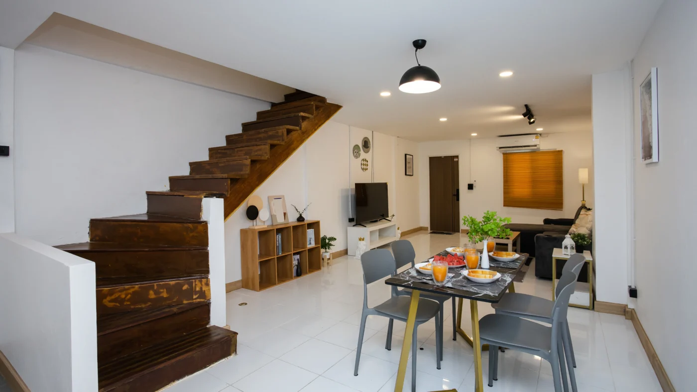 Cozy minimal-style townhouse in Ratchada–Lat Phrao, from MRT and malls. Quiet and private, ideal for families or friends (2–4 guests).