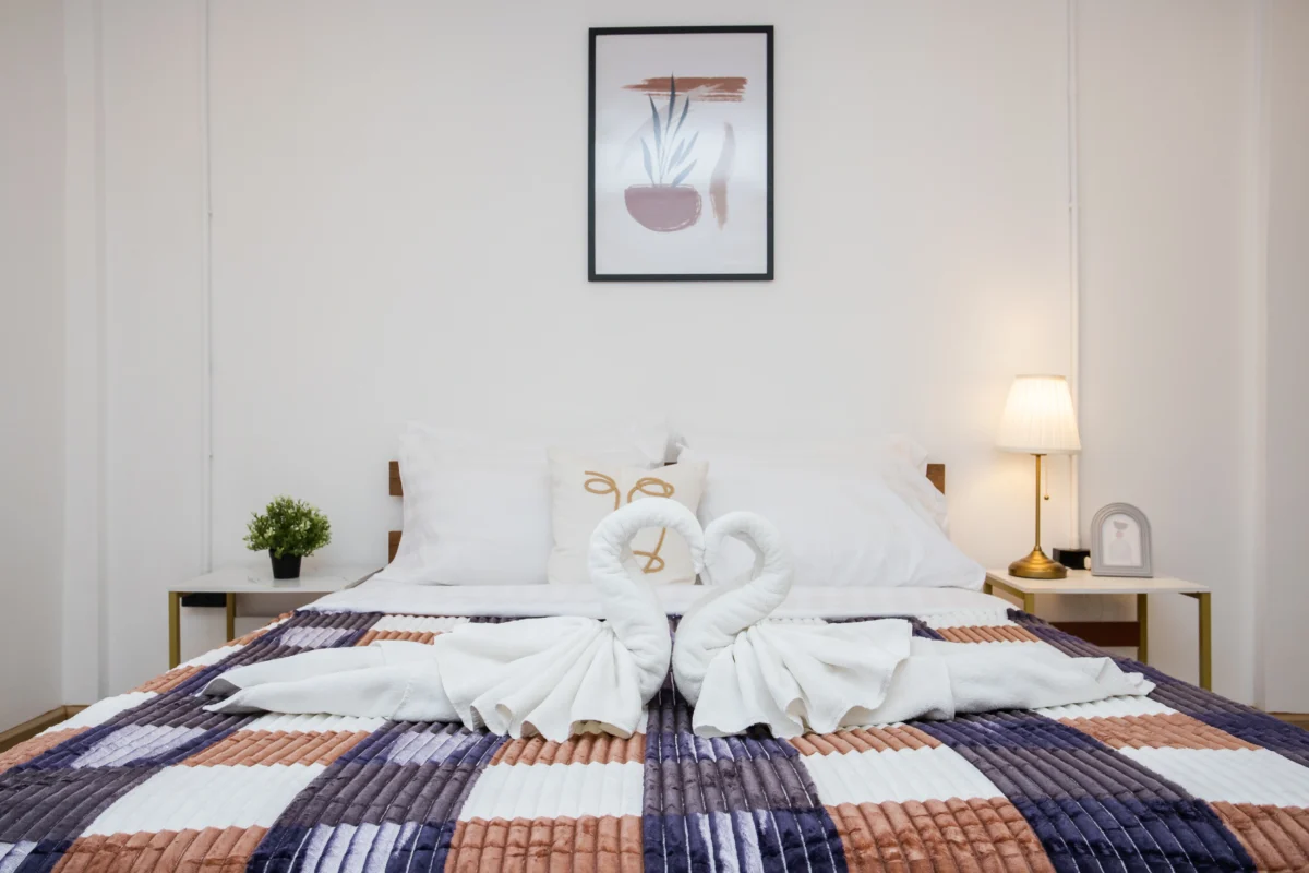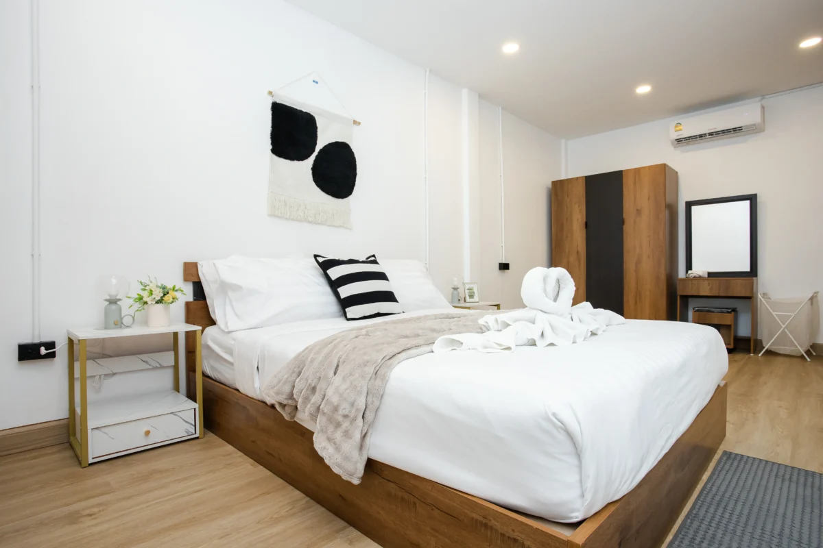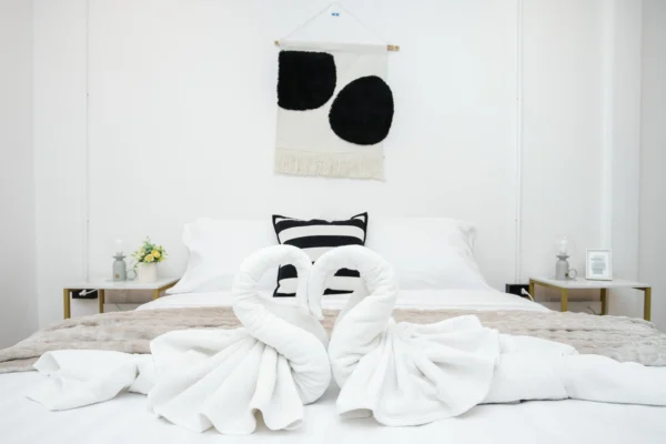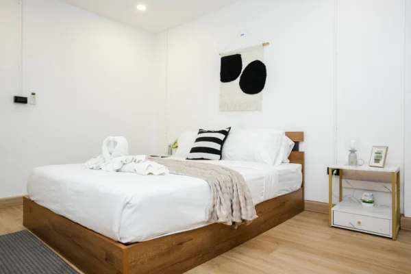 Our room comes with 5-star hotel-quality bedding and is professionally cleaned and sanitized for your safety. Enjoy fast Wi-Fi, a smart TV, washing machine, fridge, electric kitchen, microwave, kettle, and more—everything you need for a hassle-free stay.